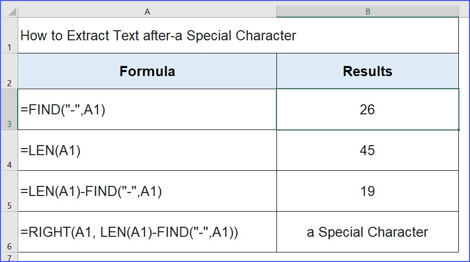 Excel has several useful functions for. Write this formula in cell b2 and copy in below . Of the hyphen character, please enter or copy the following formula into a blank cell:. To extract the city name we need to remove 6 characters from the string we will use above the below formula. Extract substring after or before a specified character